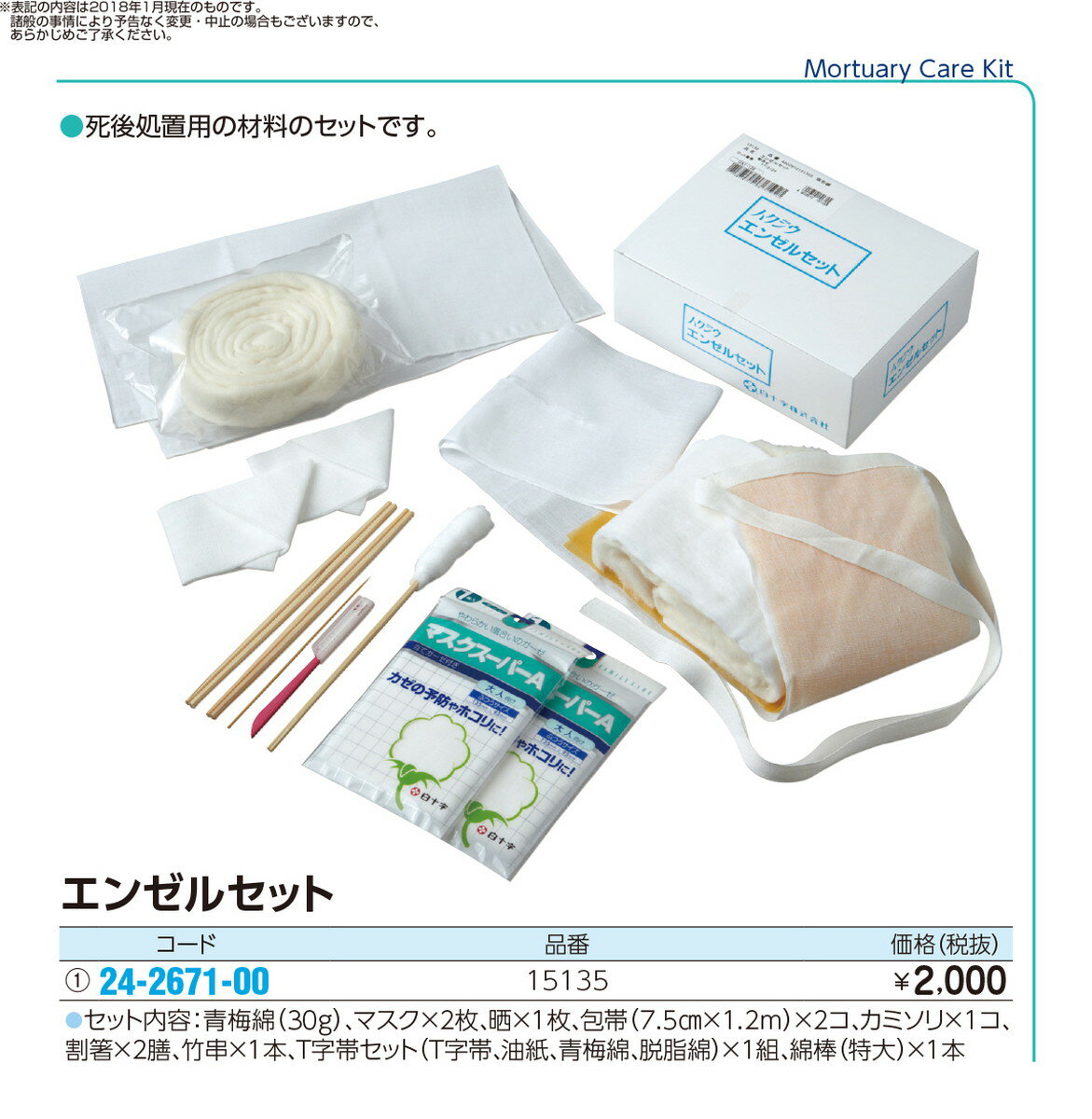 【病院専用商品】エンゼルセット 15135品番 24-2671-00--1入り 医療機器対象外 消耗品1 エンゼルケア 定価\2100 JAN 4902610151355 ●商品説明 ●死後処置用の材料のセッ...