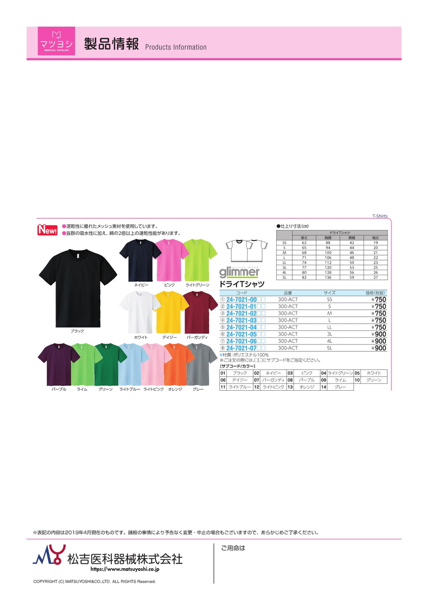 【病院専用商品】ドライTシャツ 000300-ACT(L)品番 24-7021-03081入り 医療機器対象外 ウェア・ナースグッズ ケアウェア 定価\840 JAN 4529478082005 ●商品説明 ●速乾性...